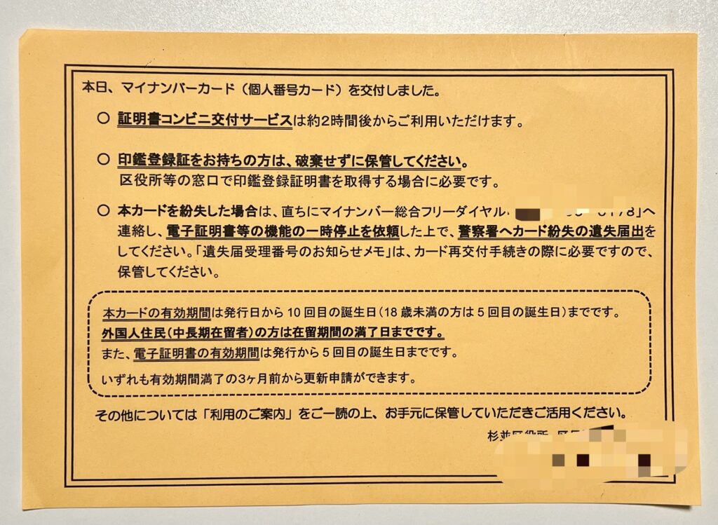 中文翻译:今天,我们已将“个人番号卡”(My Number Card)交付给您。